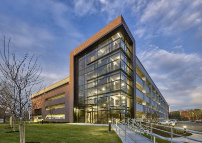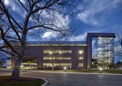 The exterior precast facade includes an elegant thin-brick finish to align with the architectural vernacular of the existing campus. Planning for sustainability, the garage features a roof system for future installation of a photo-voltaic array.