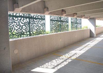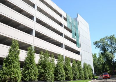 The seven-level garage features two elevators and recharge stations for electrical and hybrid vehicles on one of the levels. The garage was built with consideration for the nearby residential area: motion-activated lights save energy and minimize the impact to the neighborhood around the hospital.
