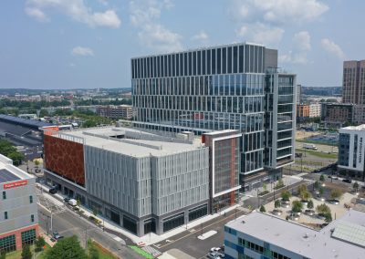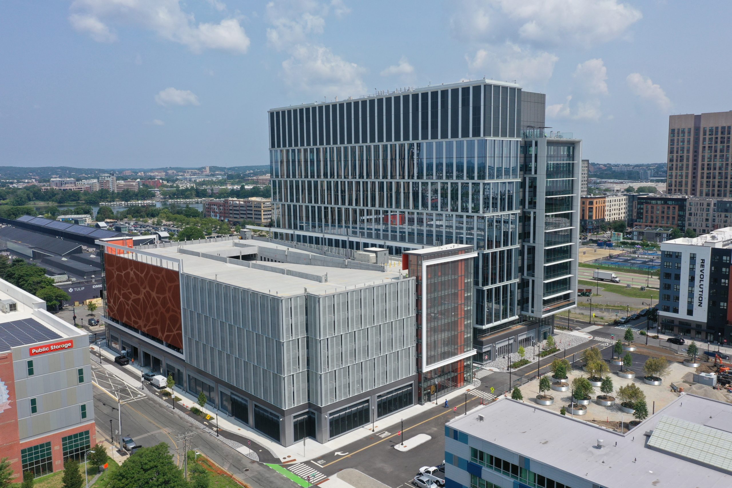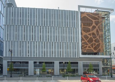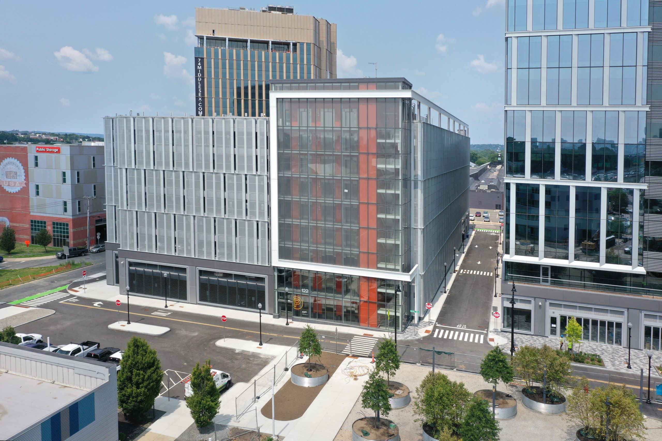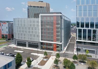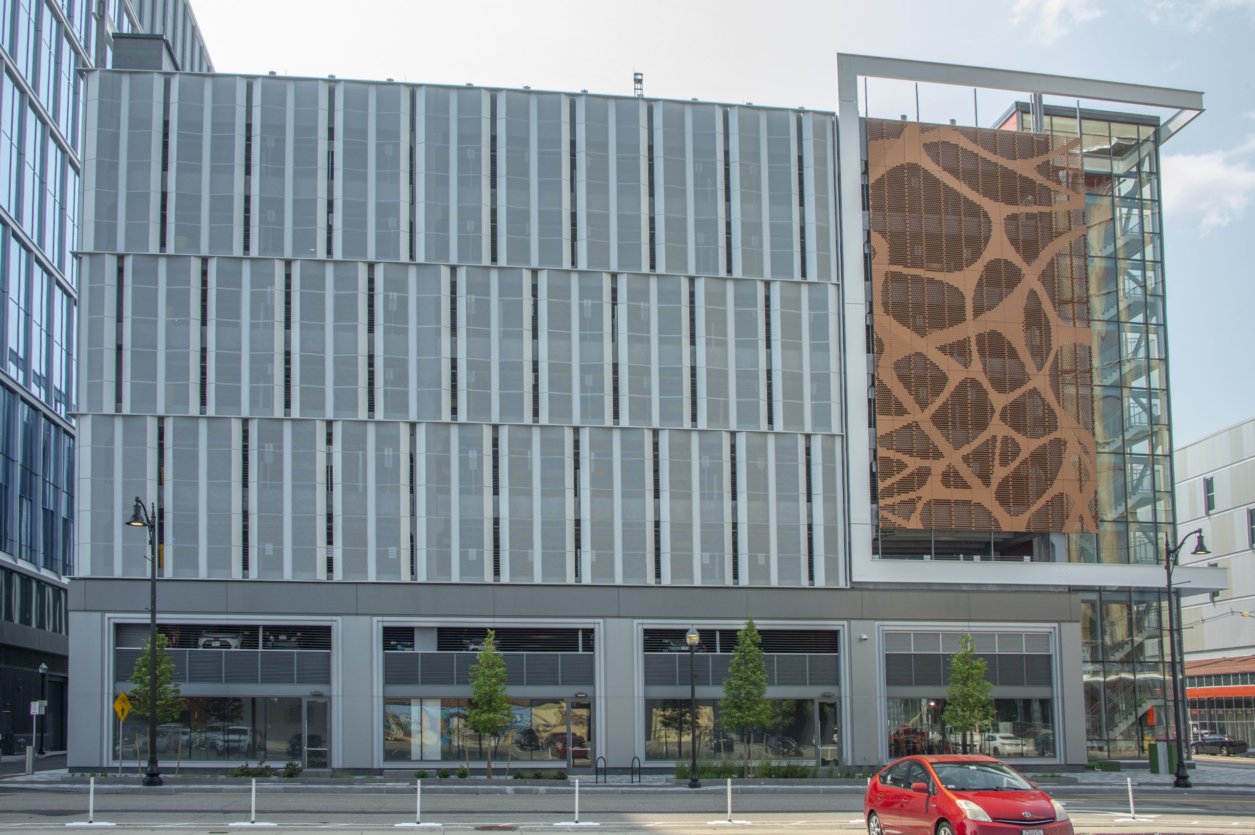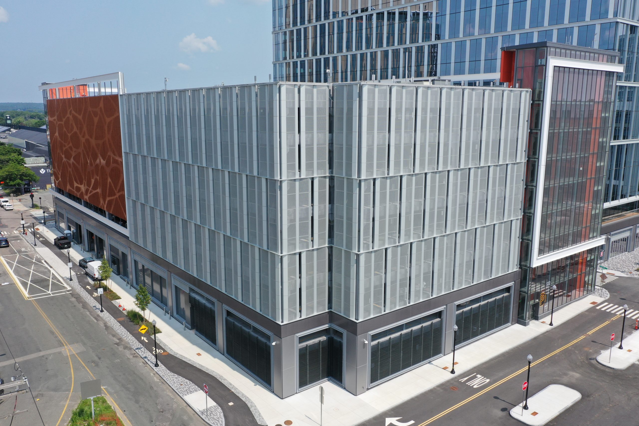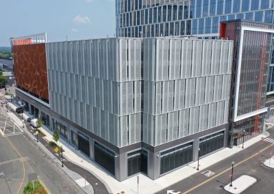 Xmbly Parking Garage is a 1,300 car mixed-use garage in Somerville, MA. The ground level includes a 3,400 square foot retail space facing Foley Street, the parking garage, and area that supports the building’s service areas, including loading, utility space and parking entries. A 15,000 square foot Fire Station for the City of Somerville is present at the grade level that the precast garage was built around.